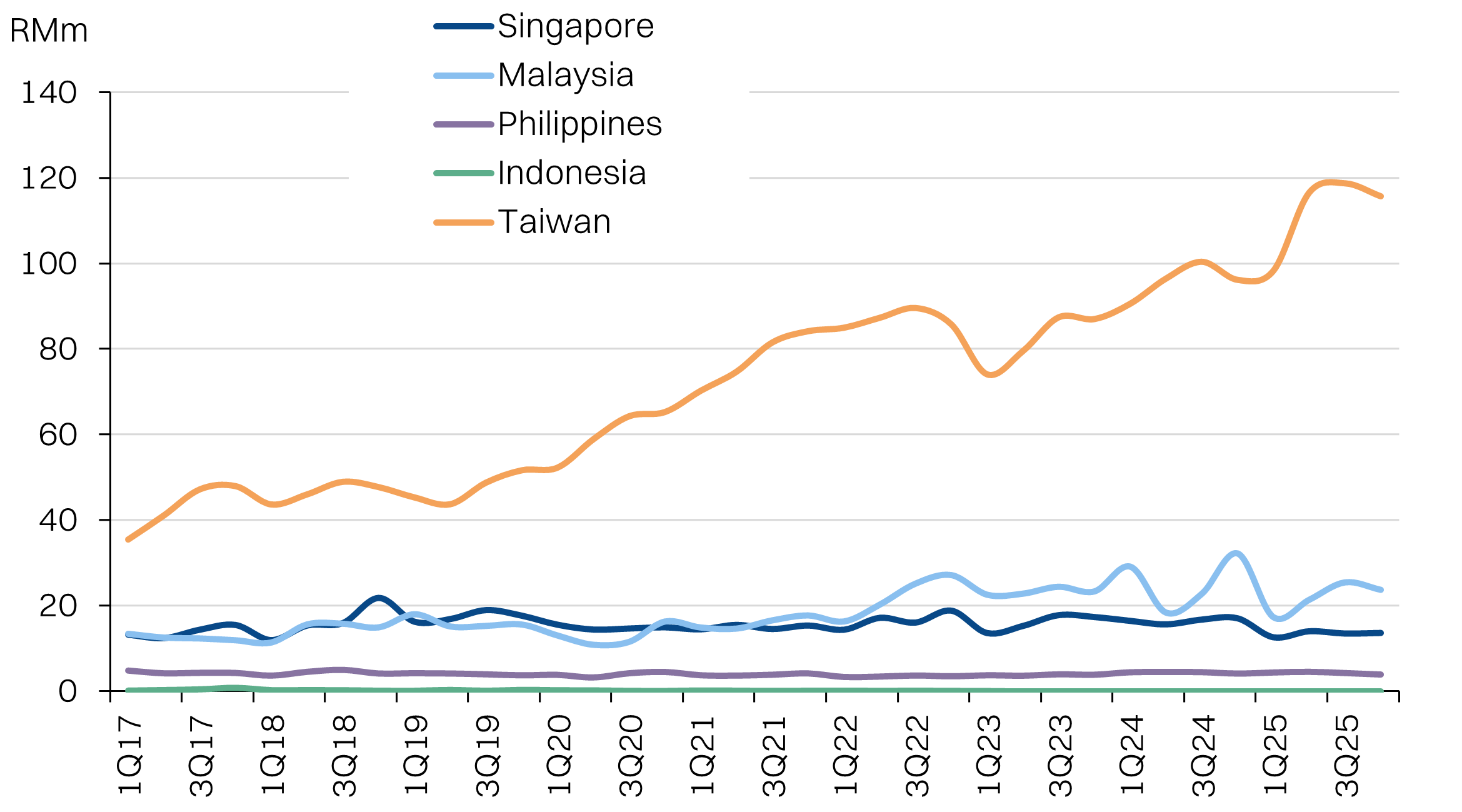 The ringgit strengthened by ~6% against the Taiwanese dollar, resulting in a forex translation drag.
