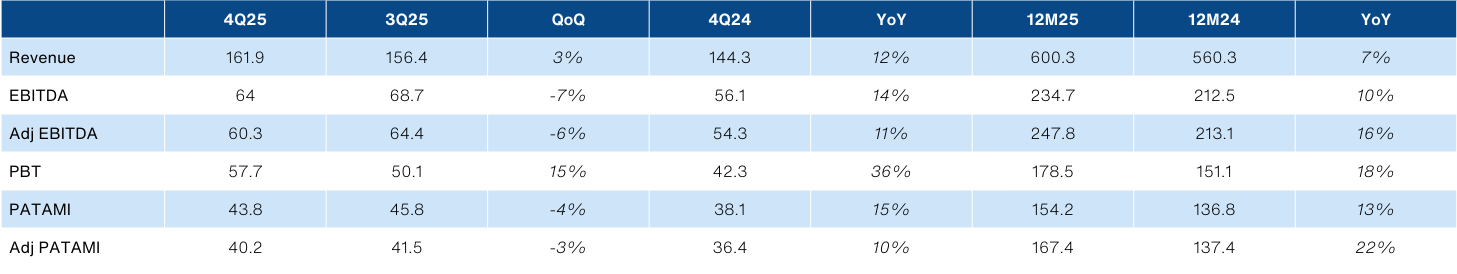 - 4Q25 Adj NP of RM40.2m brought full-year earnings to RM167m (+22% YoY), which was 89%/98% of ours/consensus expectations.