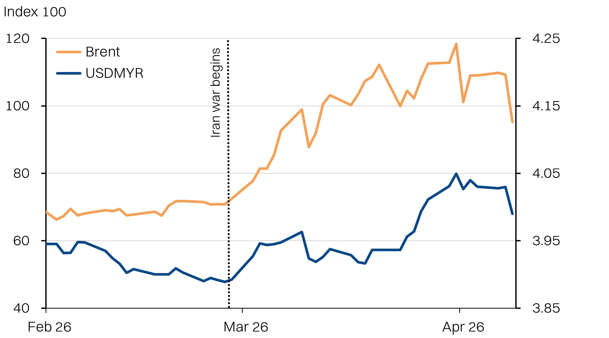 Key indices performance from start of the war / Oil prices and the ringgit