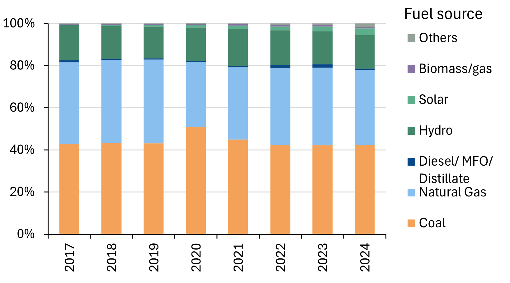 Malaysia’s utilities fuel mix over time