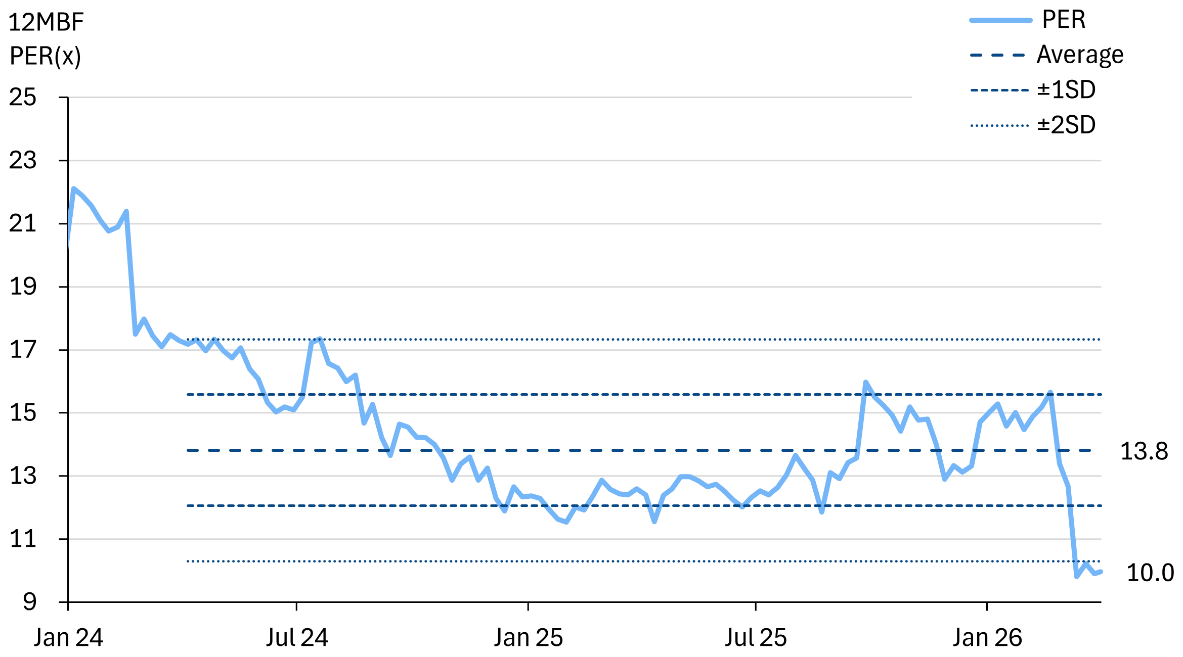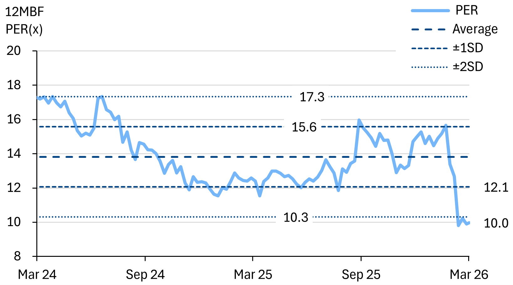 MCement is trading at -2SD vs the 2yr historic average PER