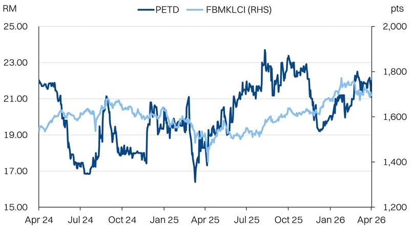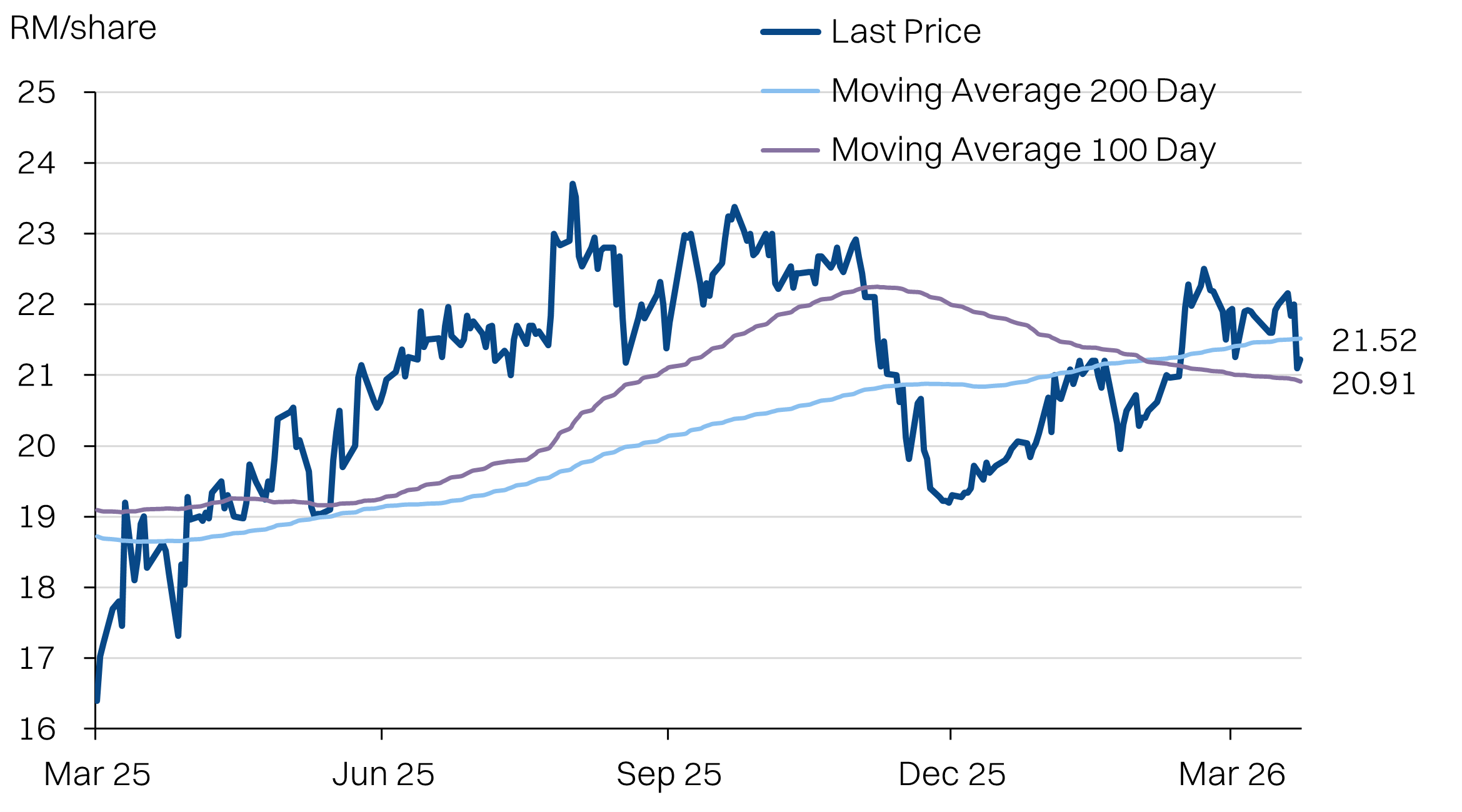 We think the immediate support level should be around RM20.90 (the 100-day moving average) on the recent newsflow. What keeps PETD interesting is the potential for more demand curtailment policies from the government in the coming weeks if a ceasefire in the Middle East remains uncertain. If this is the case and the -25% earnings downside we anticipate materializes, we foresee RM19.00 could be the next support level.