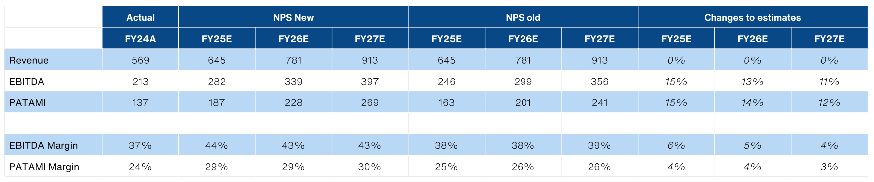 - We raise our earnings assumptions by +15-12% for FY25-27E, on high margin assumptions. There is headroom to upgrade topline growth as well, going forward.