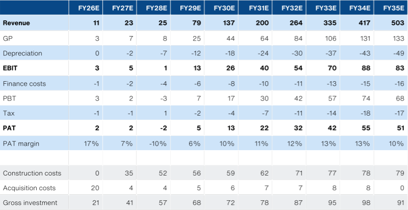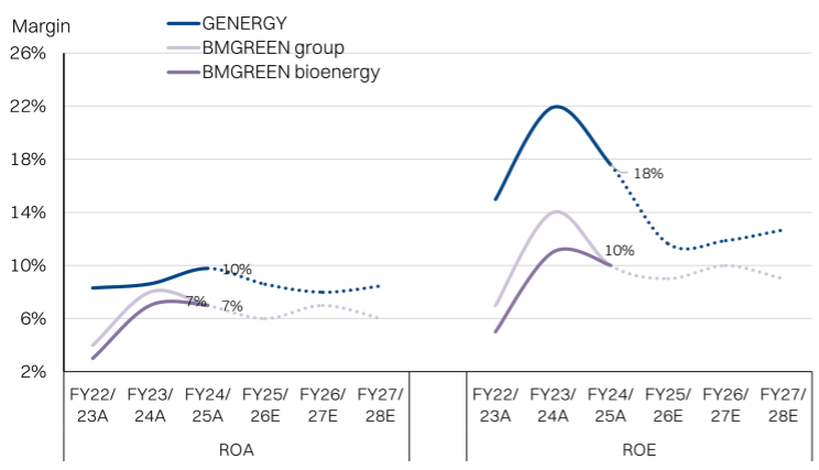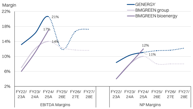 - However, we anticipate earnings growth will accelerate in FY27 once the aforementioned biomass-for-steam asset ownership segment starts generating income (18-24month construction lead time). Critically, the IRR on biomass projects should be substantially better than solar, which has been supporting BMGREEN’s growth advantage.