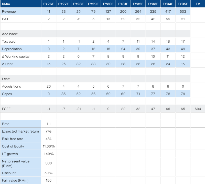 R&D (5%): RM4m has been allocated for research and development, but interestingly, it will not result in a dedicated R&D department. Instead, the cash will be deployed into the existing technical team. We do not expect any capitalization of R&D, instead, this will be incremental OPEX. The focus of the R&D appears to be testing new biomass feedstock as well as securing additional certifications. We see this as a necessary spend, but revenue support will be limited.