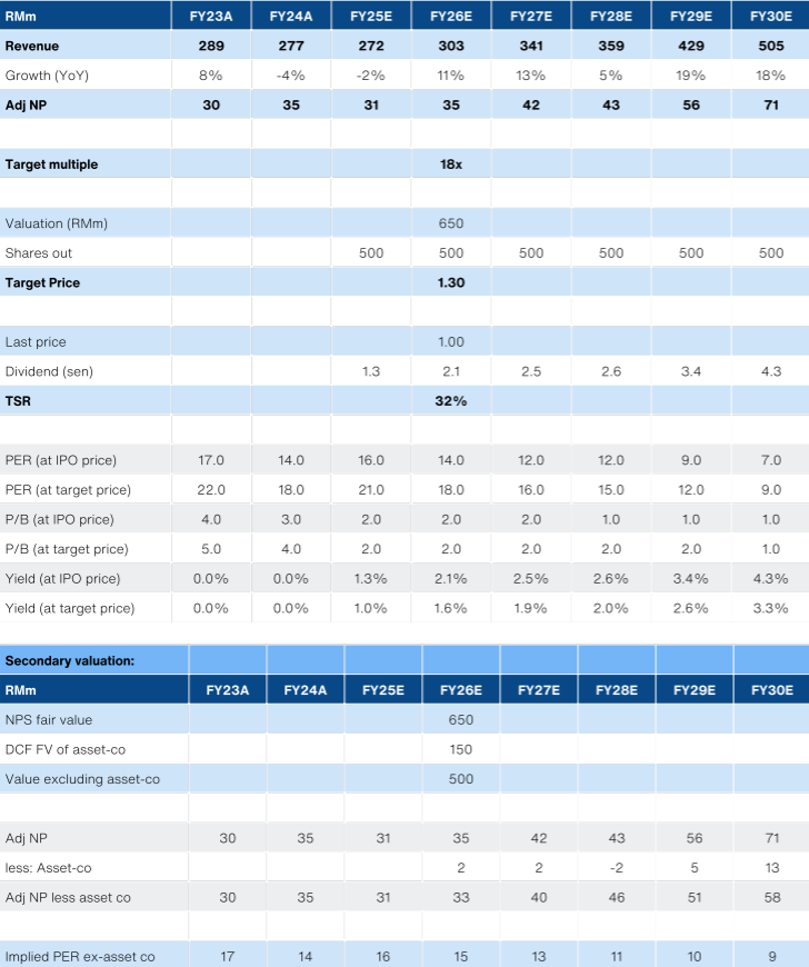 - Initiate with a BUY and a target price of RM1.30 on 18x FY26 PER.