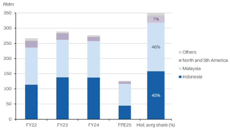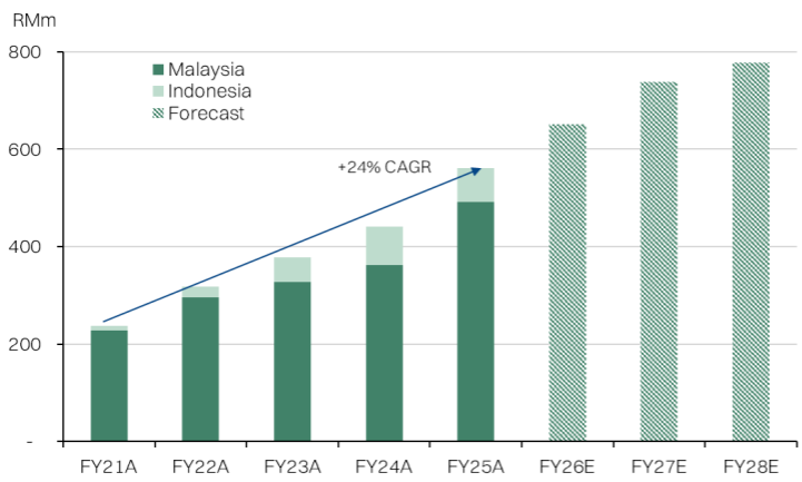 Indonesia (7%): The group also plans to invest RM5.5m over 24 months to expand the Indonesian operations, primarily with rental and staff costs for a sales office in Jakarta as well as service centers in Pekanbaru and Sulawesi. GENERGY currently has service centers in Medan and Banjarbaru. Indonesia is a key market and we expect investments here to revenue accretive by FY27, but lift OPEX in the short term.