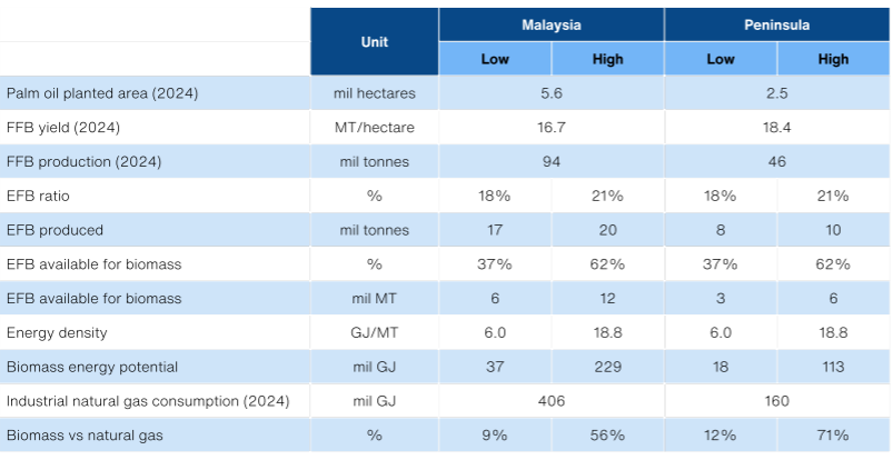 For Malaysia alone, we estimate the upper limit of the market could be as large as RM2-3bn in capex, based on the 17-20mil MT of empty fruit bunch (EFB) produced annually. For perspective, this could displace as much as 56% of the total natural gas consumption annually in Peninsula Malaysia alone.