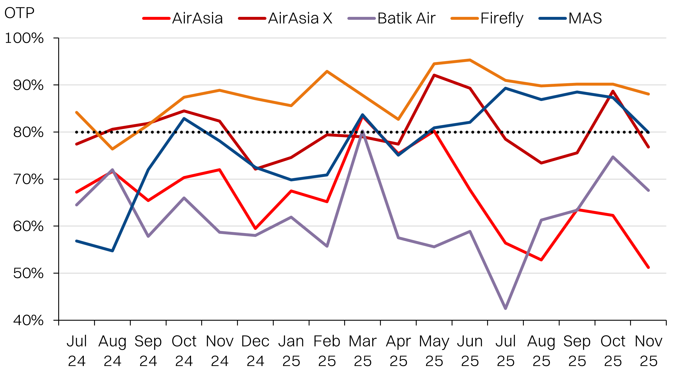 International flights on-time performance: AirAsia has lagged