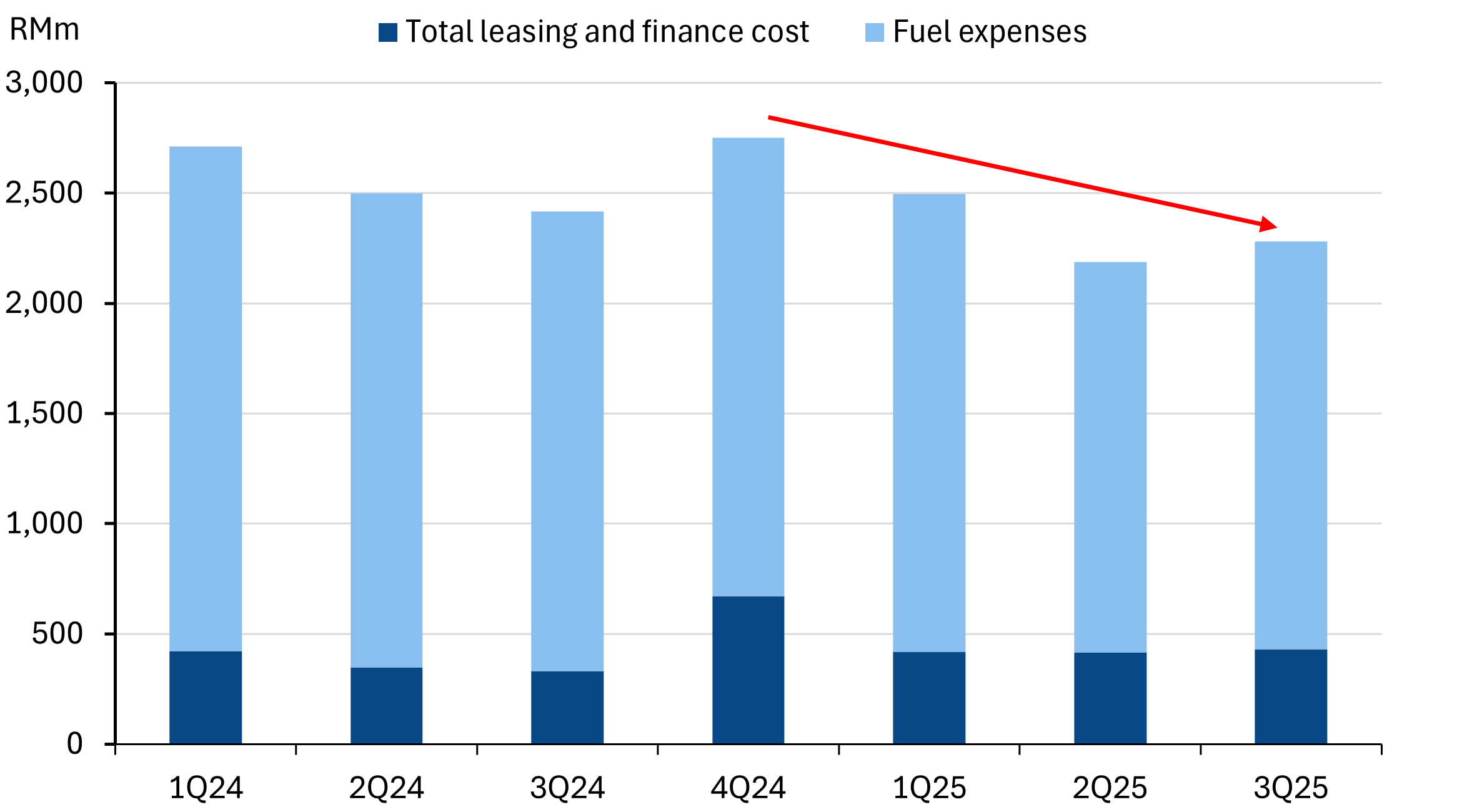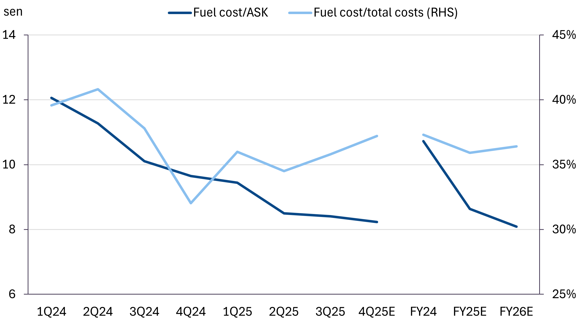 We estimate that every 1% reduction in realised fuel costs translates to ~RM70m in cost savings.