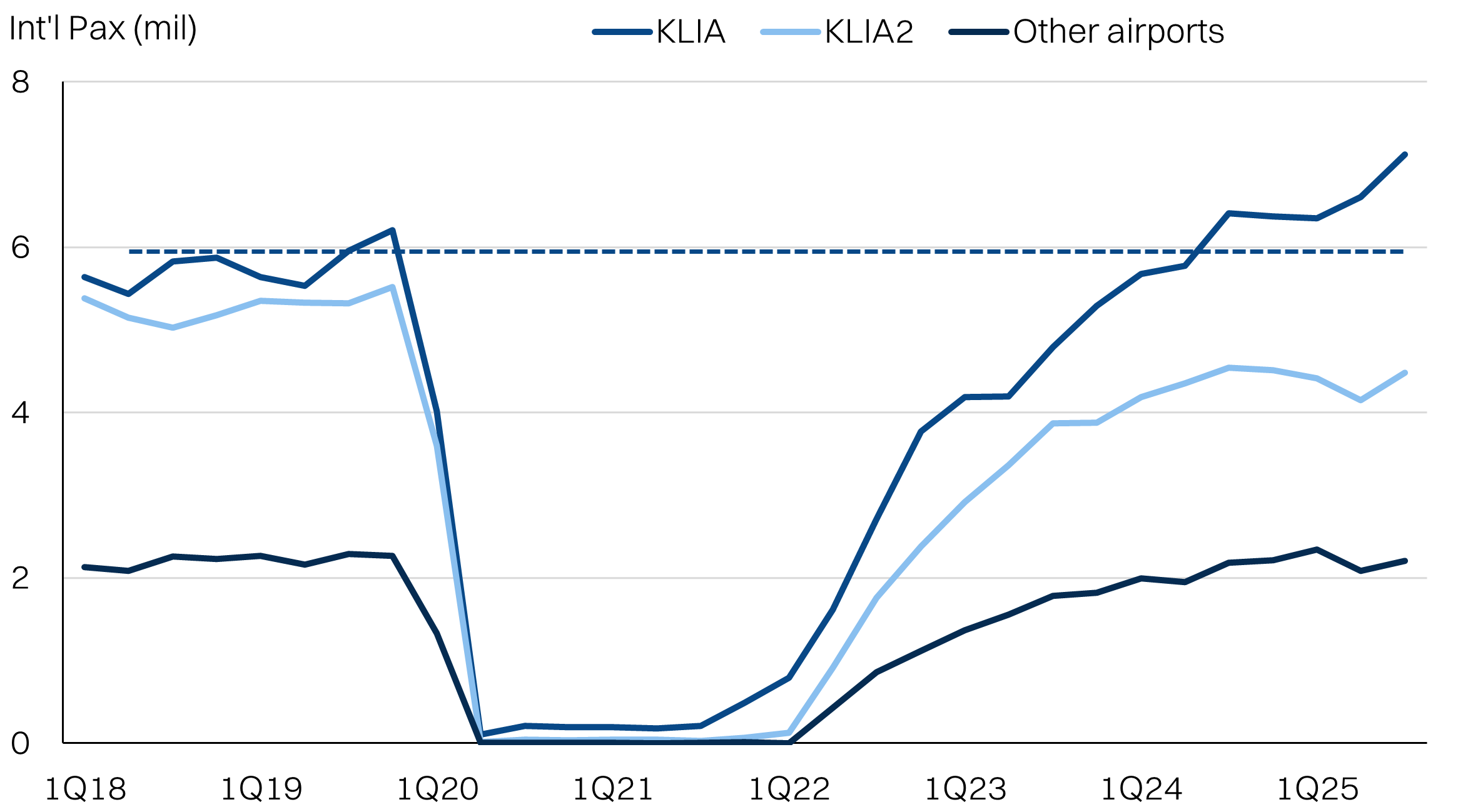 International passenger movements - KLIA2 has lagged the recovery at KLIA