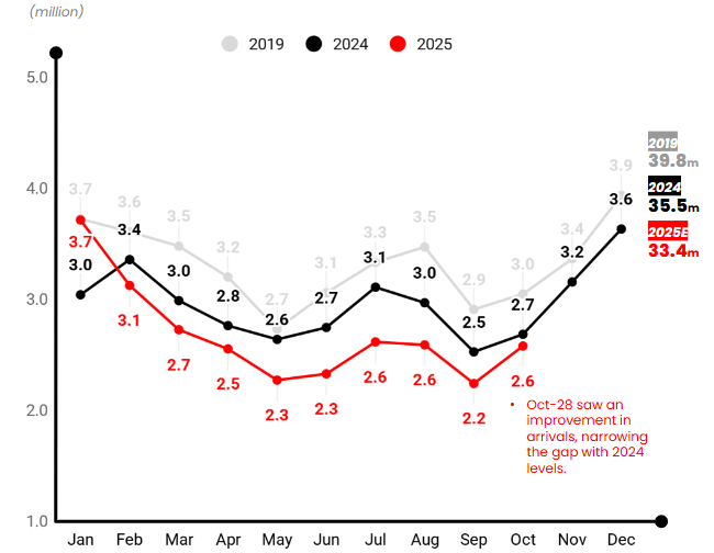 Thailand tourist arrivals fell in 2025