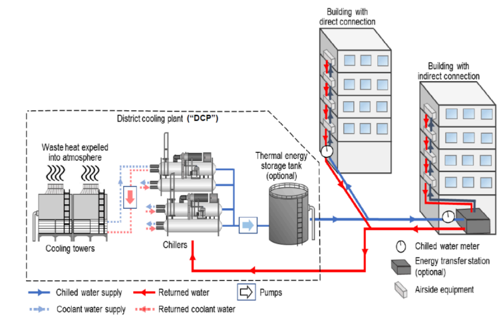 Illustration of a district cooling system