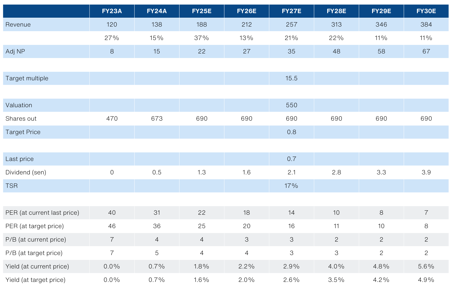 - We cut our TP to RM0.80 on the lower NP and lower target multiple of 15.5x FY27E PER. We revise our recommendation to BUY.