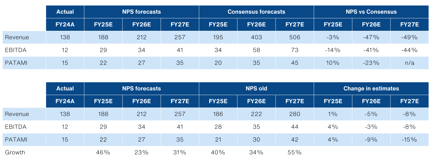 - In turn, we cut out FY26/27 NP assumptions by -9%/-15%, deflecting the loss of MUSB as well as delays to subsequent acquisitions.