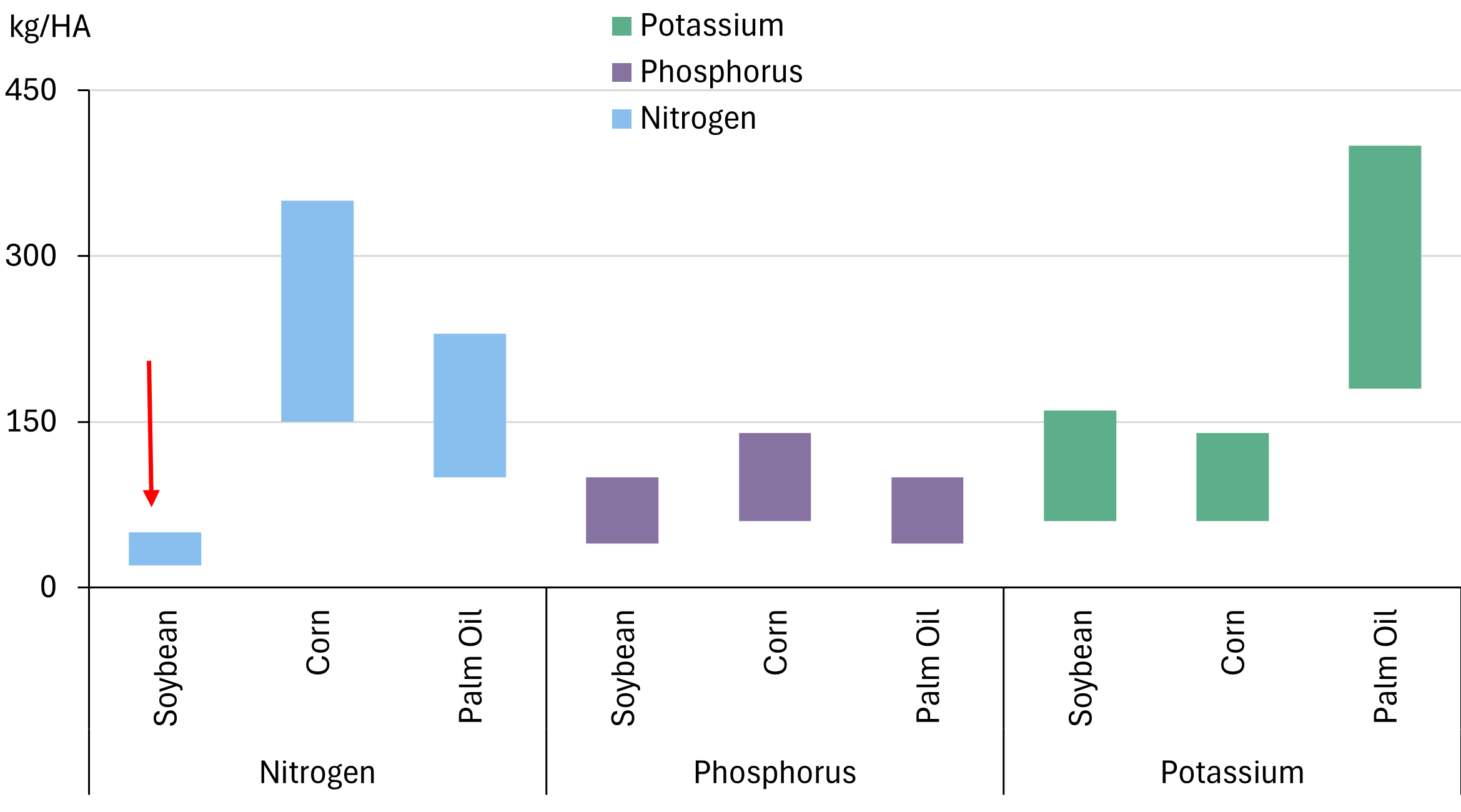 Readers might recall a lesson from high school biology - soybean plants have a symbiotic relationship with rhizobia root bacteria that helps fix atmospheric nitrogen into the soil. This substantially reduces the nitrogen fertiliser requirement of soybeans, which is proving to be a unique strength for the crop since urea prices have surged.