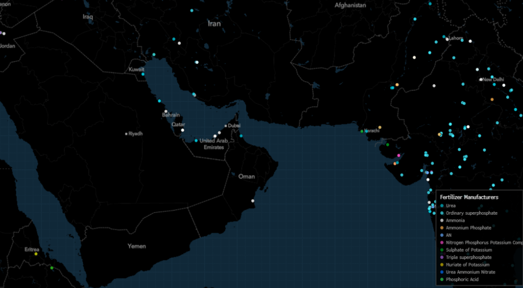 One-third of nitrogen fertilizers pass through the Strait of Hormuz