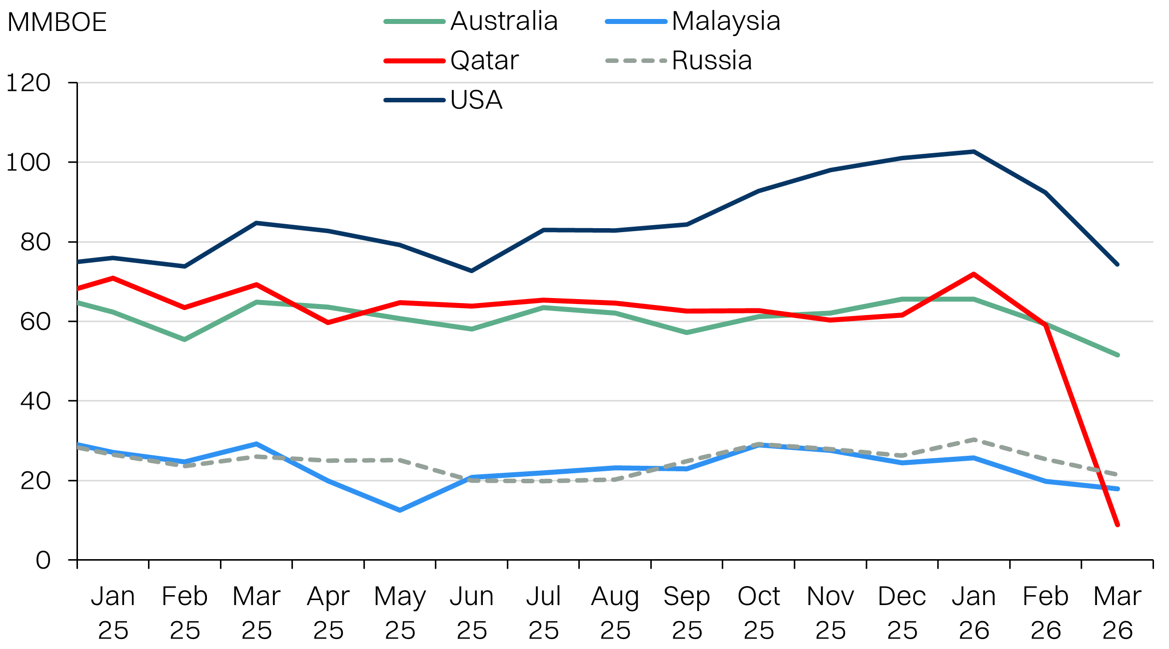 LNG exports: Qatar’s exports have fallen sharply due to the war.