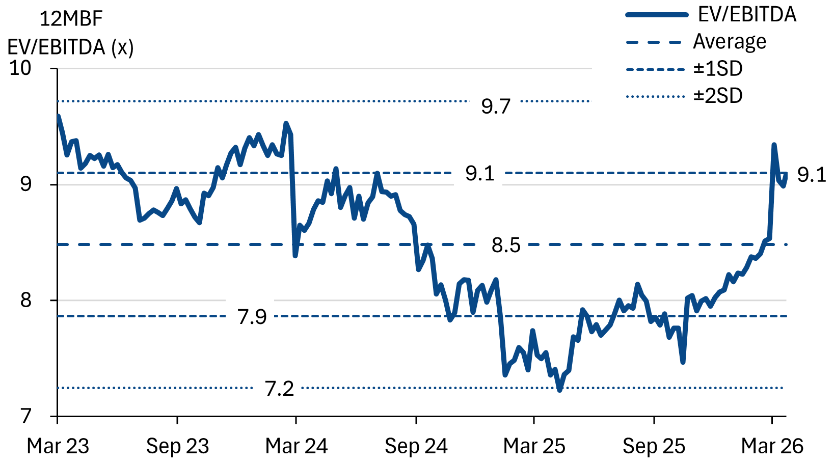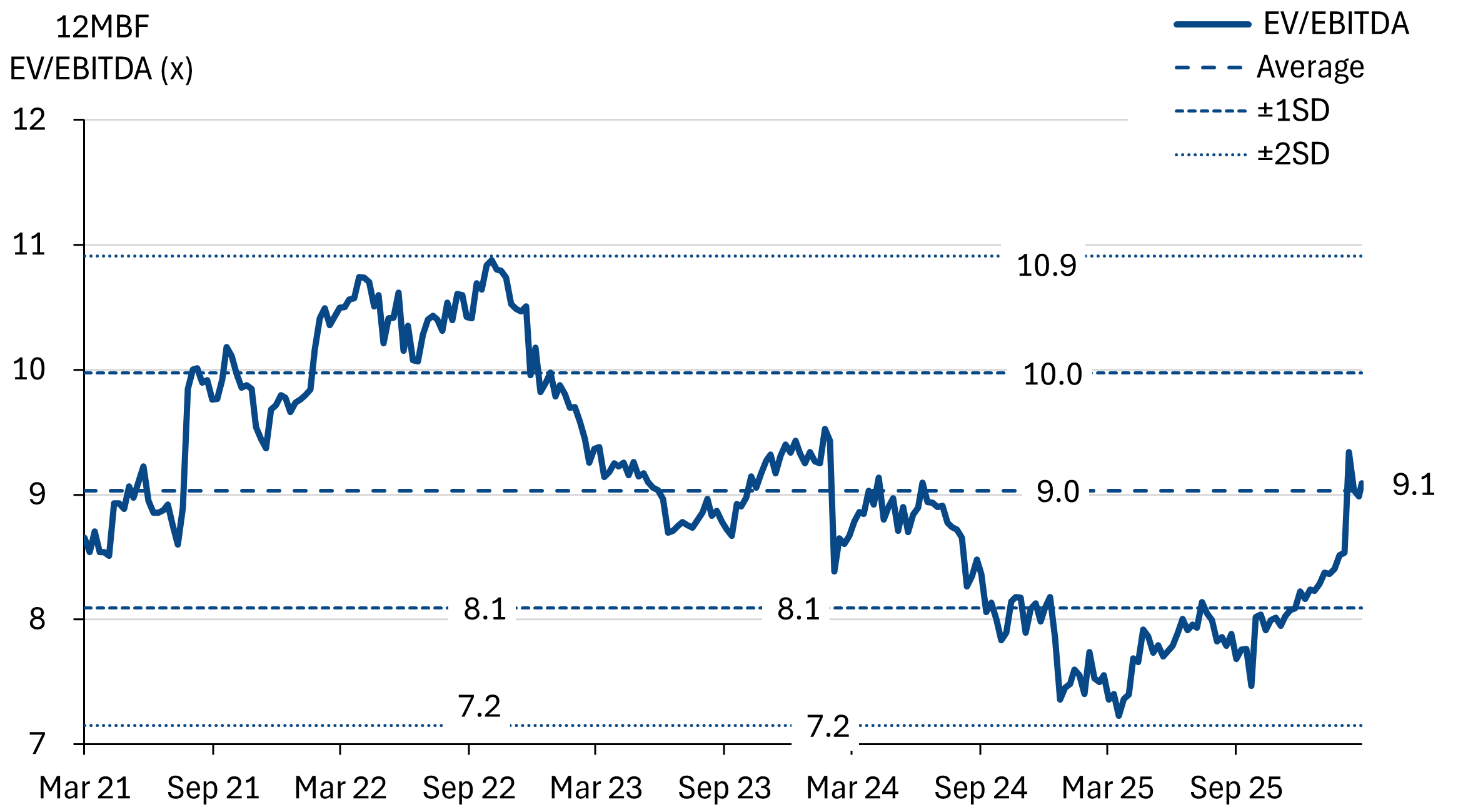 - Our fair value (non-rated) of RM7.20 is based on 8.1x EV/EBITDA, which is -1SD vs the 5yr average.