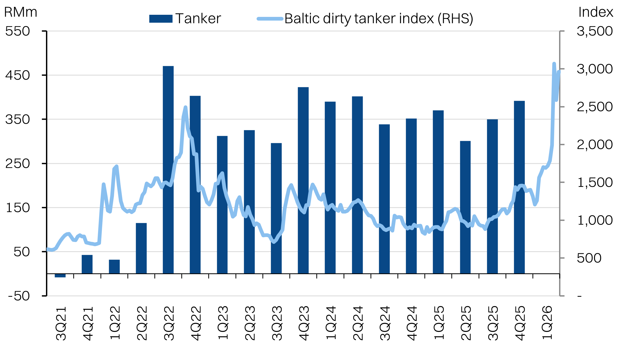 - In turn, market has shifted more focus to tanker rates when assessing MISC’s outlook, given it contributes ~50% of operating profits. Note that this is also skewed by the shift in LNG earnings recognition into the associate contributions which is not captured in these segmental figures.
