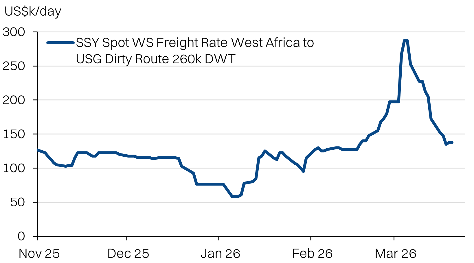- Some routes, like West Africa to the US have already corrected to pre-war levels.