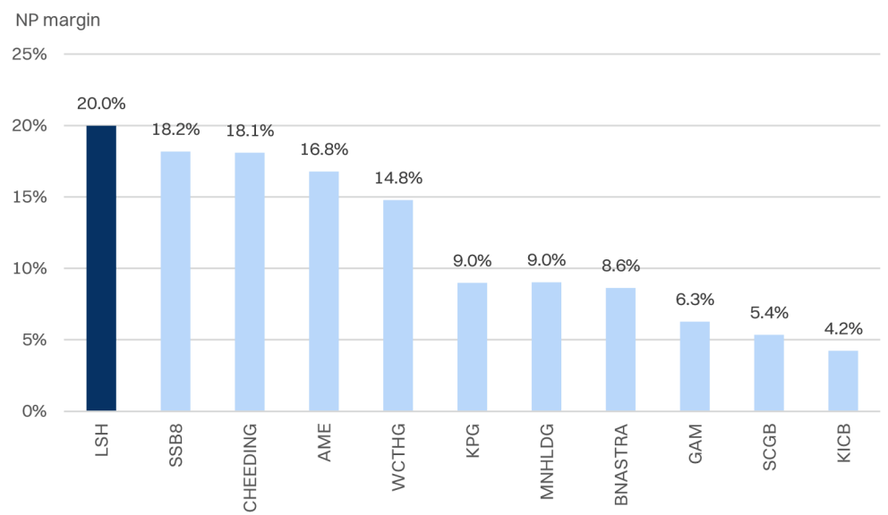 - LSH Capital averages a GP margin around 30% and NP margin around 20%. While there should be some dilution as the group scales up and takes on larger projects with lower margins, if it can keep core NP margins in the high-teens, it would remain one of the best in the sector. We contrast this with other construction stocks that have seen steep revenue growth on bloating orderbooks, but diluted by a sharp fall in margins.