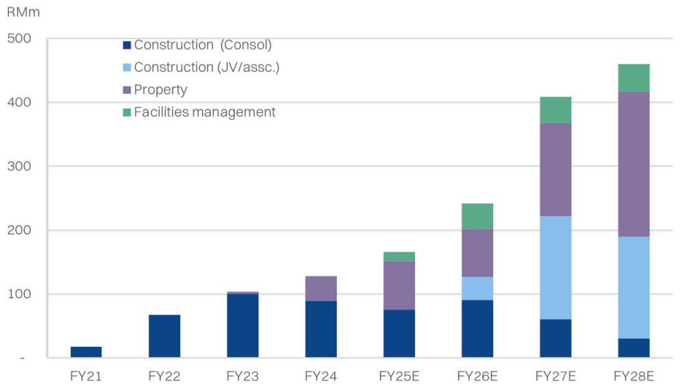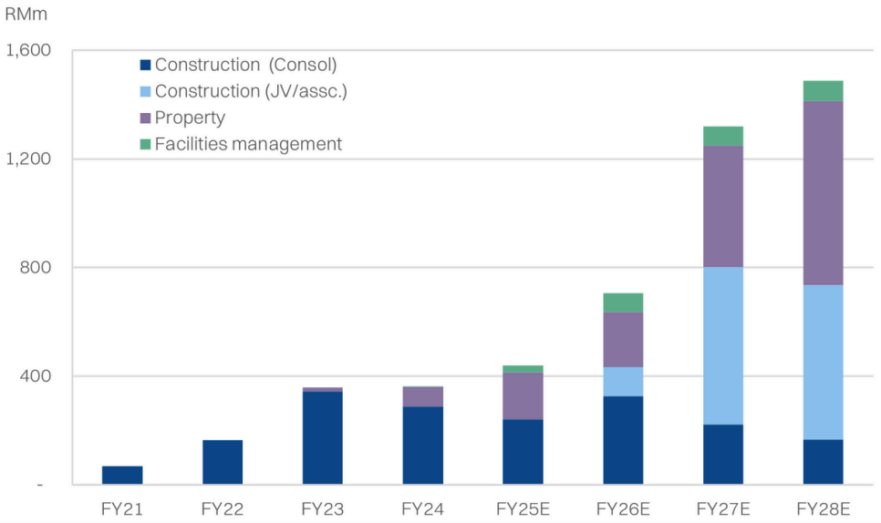 These additional orderbook wins will drive ~RM500m in additional revenue for the segment (including proportional JV share or revenues) in FY27E, compared with the current run rate of ~RM160m for FY25E.