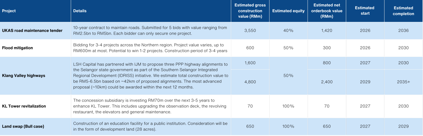 But beyond 2027, one of the reasons we like LSH is the potential visibility that is underpinned by two additional highway concession projects that is worth (we estimate) a further RM2.4bn.