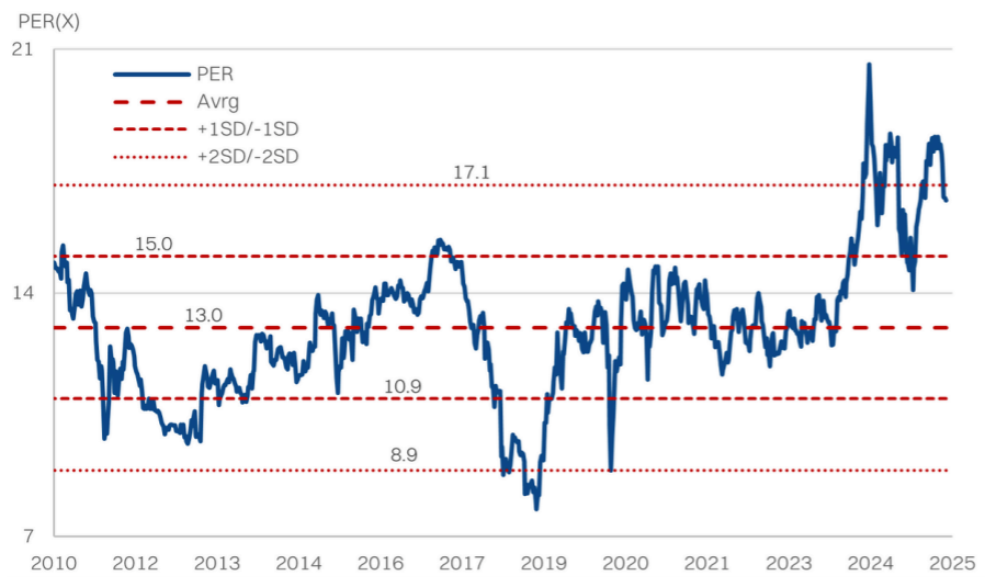 For context, the trailing 3-year and 5-year average PER for the KLCON is 15.1x and