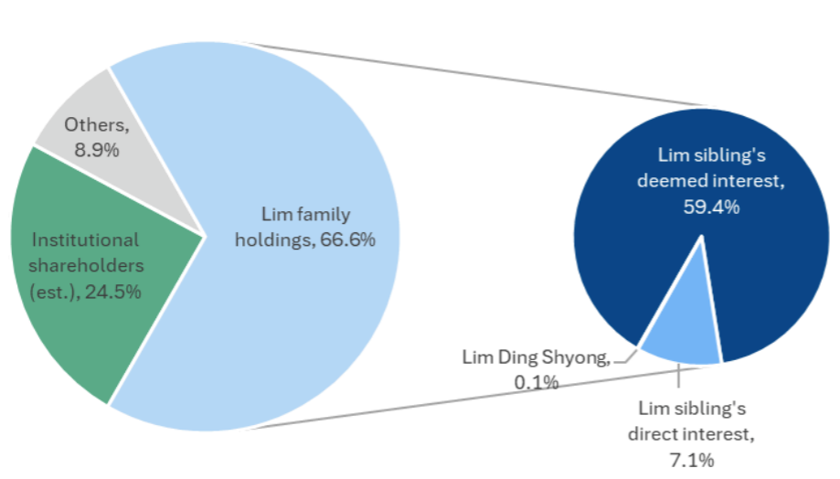- Family business - The four Lim siblings collectively control 61% of the company and have full management control. Only 50% of the board is independent.