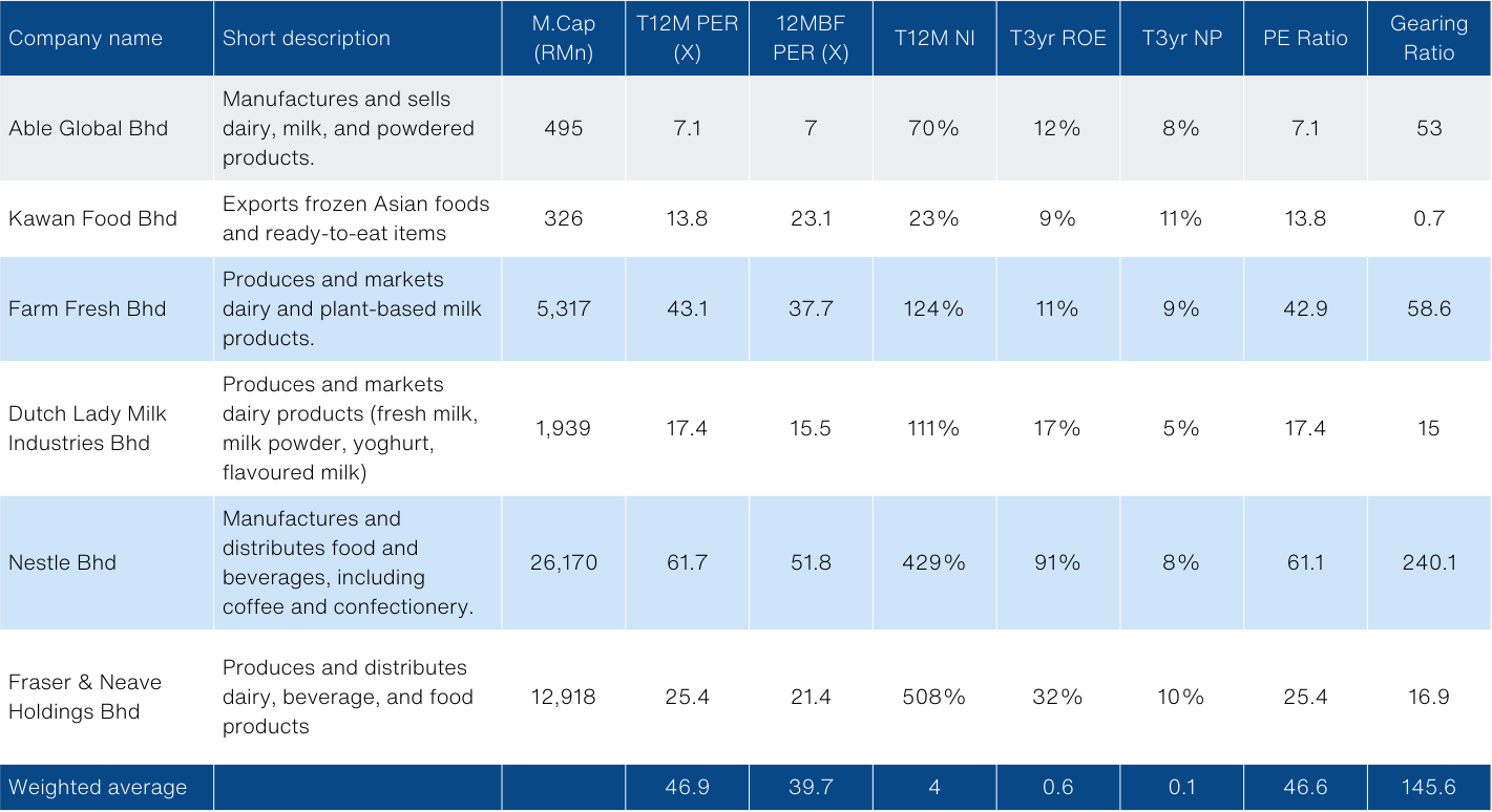 Additionally, the broader shift by Cambodians away from Thai brands should continue to support Able’s market penetration. However, it is worth noting that Able sources the bulk of its raw milk from Thailand. Other Malaysian companies are also jumping on the opportunity, like Farm Fresh Bhd (FFB), which has an MoU with Cambodia’s Alpha Group and local authorities to help develop the country’s dairy infrastructure.