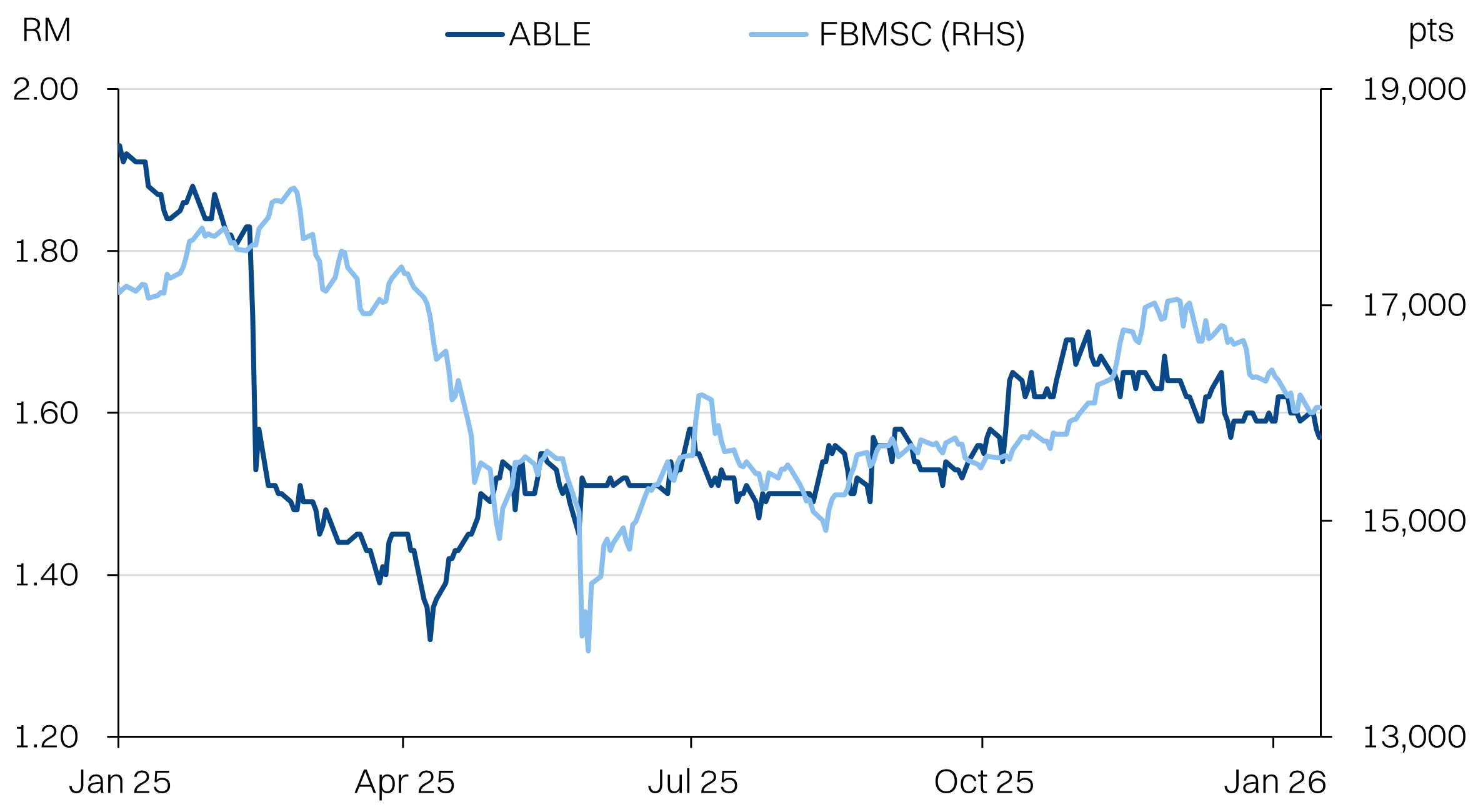 - Meanwhile, Able’s valuations remain depressed since tanking in February 2025 following the MACC probe into the company and management. Able used to trade at an average of 9.7x PER (BF 12M).