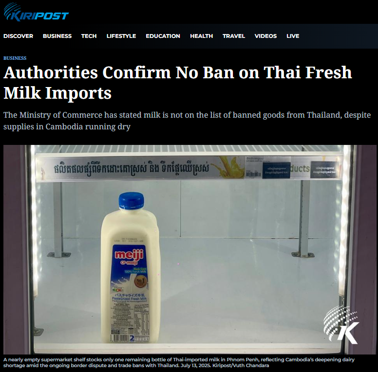 Prior to the military conflict along the Thai-Cambodian border in 2025, Thailand was the largest supplier of milk products to Cambodia. According to OEC data, Thailand made up 76% of Cambodian milk products imported by value. Border closures and disruptions to supply chains resulted in severe shortages, especially for raw milk.