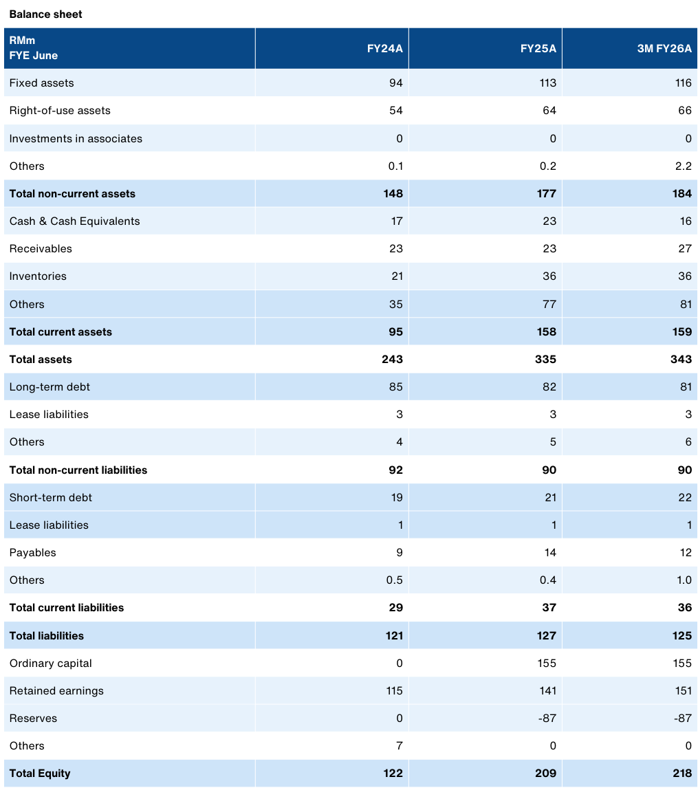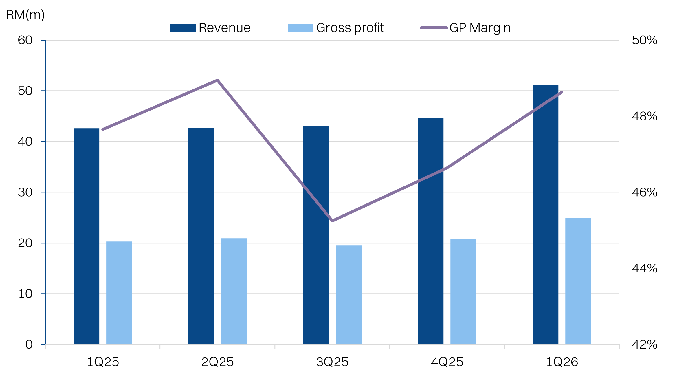 Despite Twinine’s consolidation, Group gross profit margin expanded to 48.5% in 1QFY26 from 46.6% in FY25. We view this outcome positively, as it demonstrates the resilience of core margins. While Twinine may exert modest margin dilution in the near term, it broadens the earnings base and introduces medium-term margin upside through scale benefits. As integration progresses and utilisation continues to ramp over FY26–FY27, we expect the margin impact to normalise.