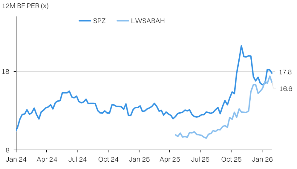 While smaller than Spritzer (SPZ), Life Water should be able to deliver similar earnings growth in CY26E, supported by the same tourism tailwinds (albeit, focused to Sabah). Additionally, Life Water has been more proactive with inorganic growth and has the headroom to diversify into mineral water as well as selling into more states outside of Sabah (including Brunei).