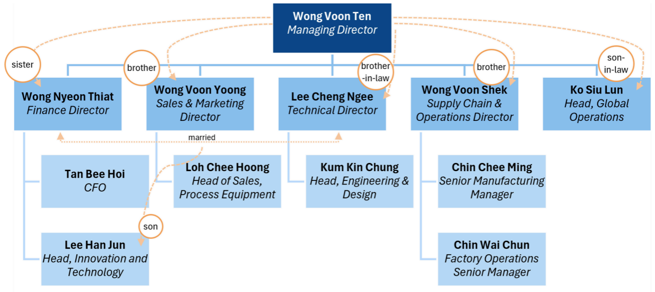 Wong Voon Ten’s son-in-law, Ko Siu Lun is the Head of Global Operations along with nephew Lee Han Jun (son of Lee Cheng Ngee & Wong Nyeon Thiat) is the Head of Innovation & Technology.