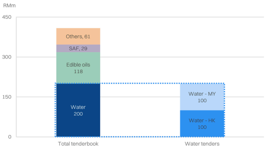 Roughly half the tenderbook (RM200m) pertains to water projects, of which half is