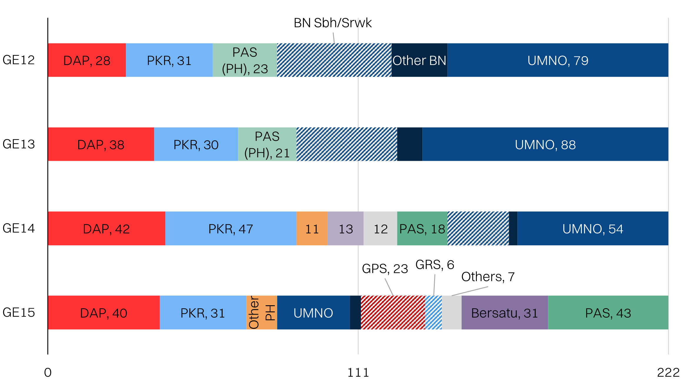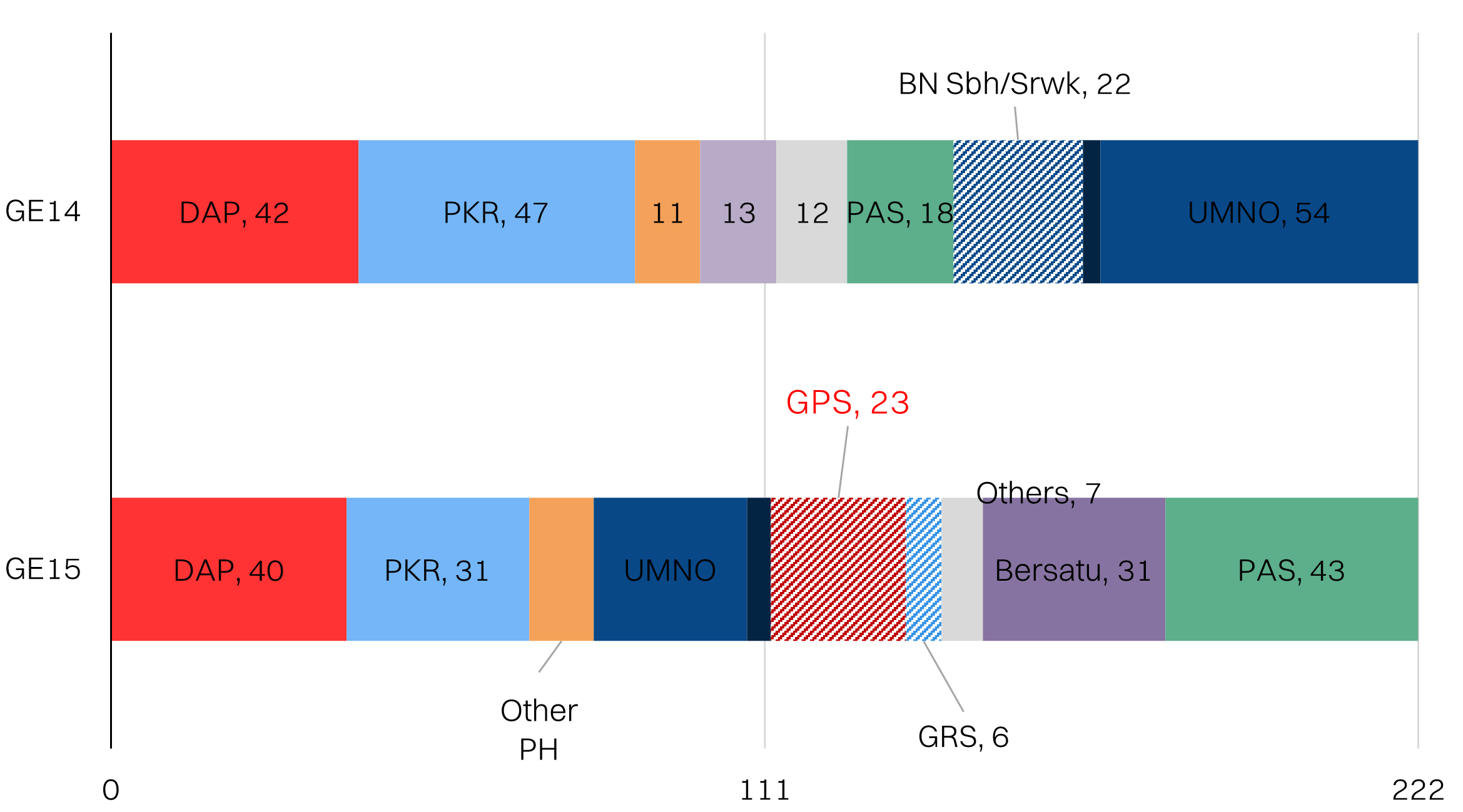 GE15 marked a significant shift in Malaysia politics when it resulted in a hung parliament. PH saw a drop in vote share for the first time since GE11 and PAS under the PN banner bagged the single largest block of seats at 43.