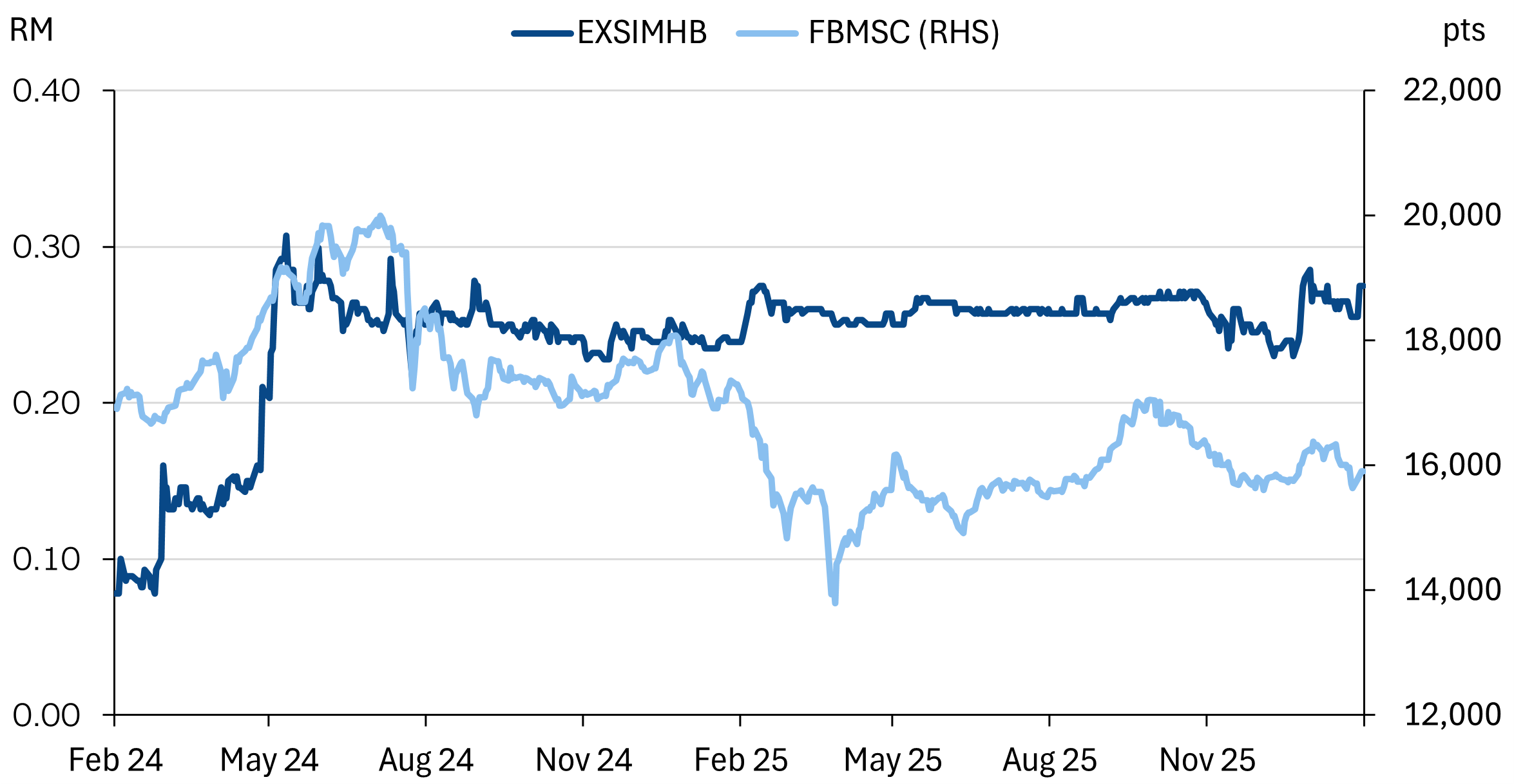 - We estimate EXSIMHB can deliver ~20% NP growth for FY27E, even with conservative margin assumption of 9% (FY25/26E: 12%). Against this trajectory, a target multiple of 18x FY27E would ascribe a fair value of 0.33sen/share.
